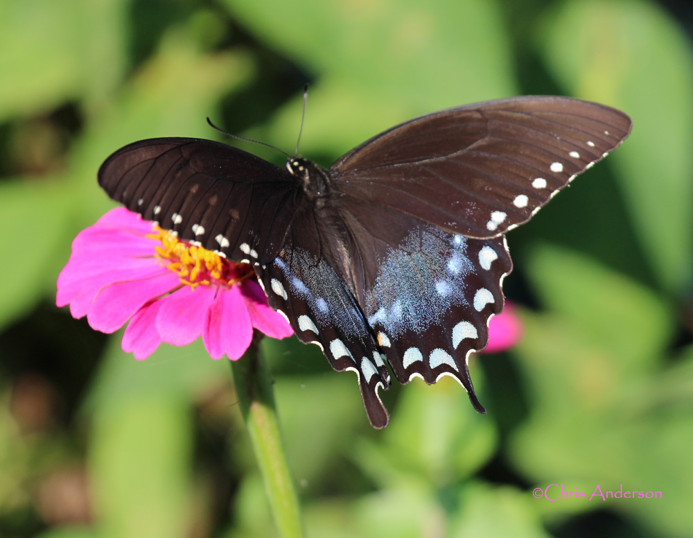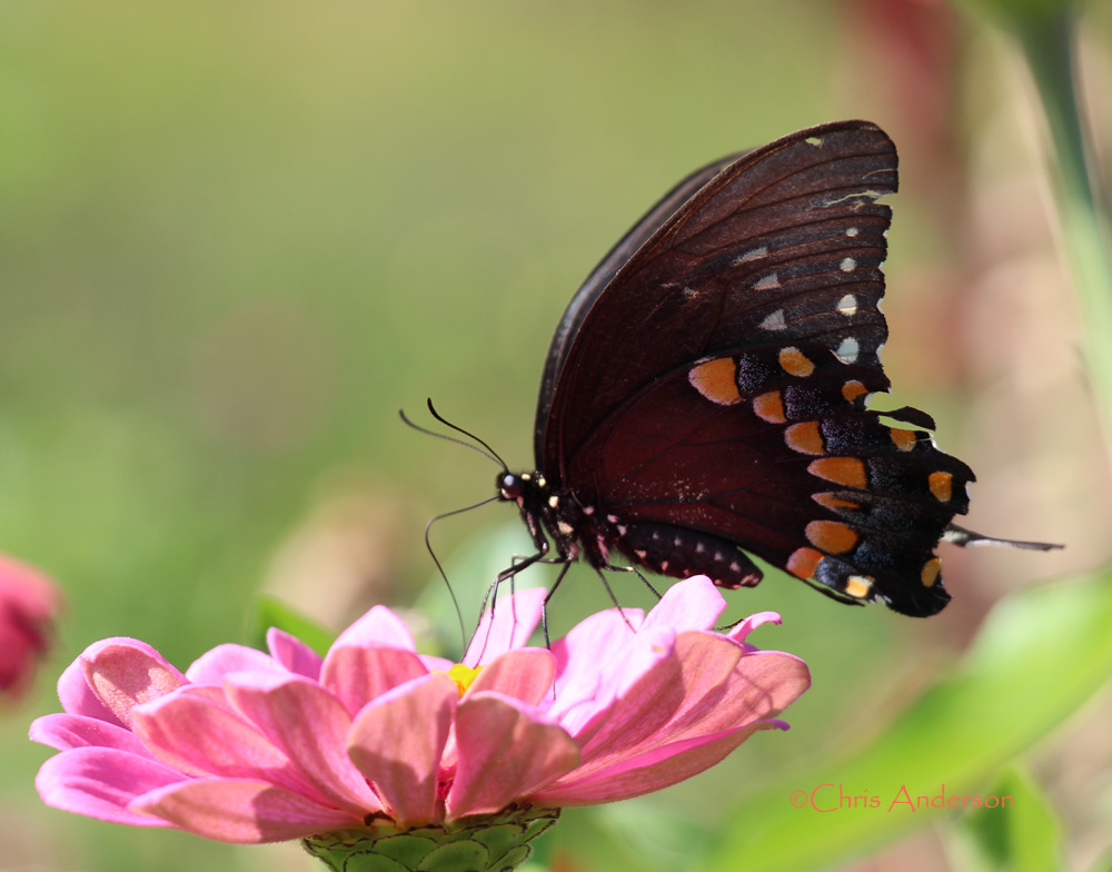 - Spicebush Swallowtail gathering nectar from a zinnia