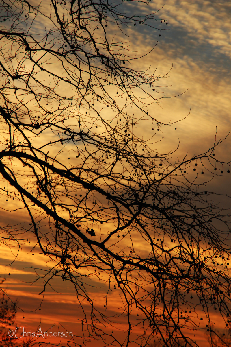 - Seed heads decorate sycamore branches like natural Christmas trees