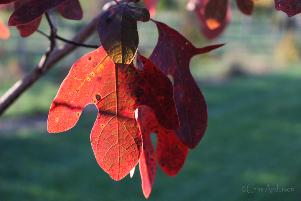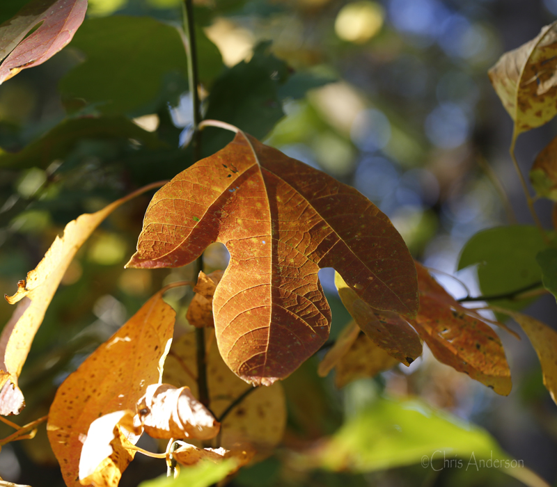 As autumn descends on the Shenandoah Valley and trees don their bright attire before resting for winter, one understory tree can’t decide on what shade it wants to wear so displays them all – from lemon yellow and peach to russet and bright red: the diminutive sassafras (Sassafras albidum) is a delight with its interesting leaves, graceful branch structure and small stature.