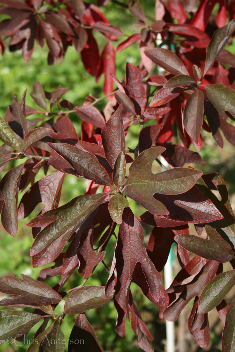 Belonging to the family Lauraceae, they are unusual in that each tree can have three leaf shapes – oblong, mitten-shaped and three-pronged.